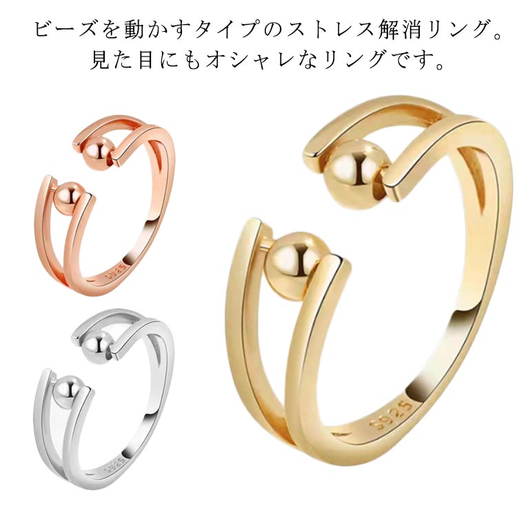 減圧リング アンチストレスリング 回転ビーズ付き 不安解消 オープンリング 回転ビーズリング 不安防止