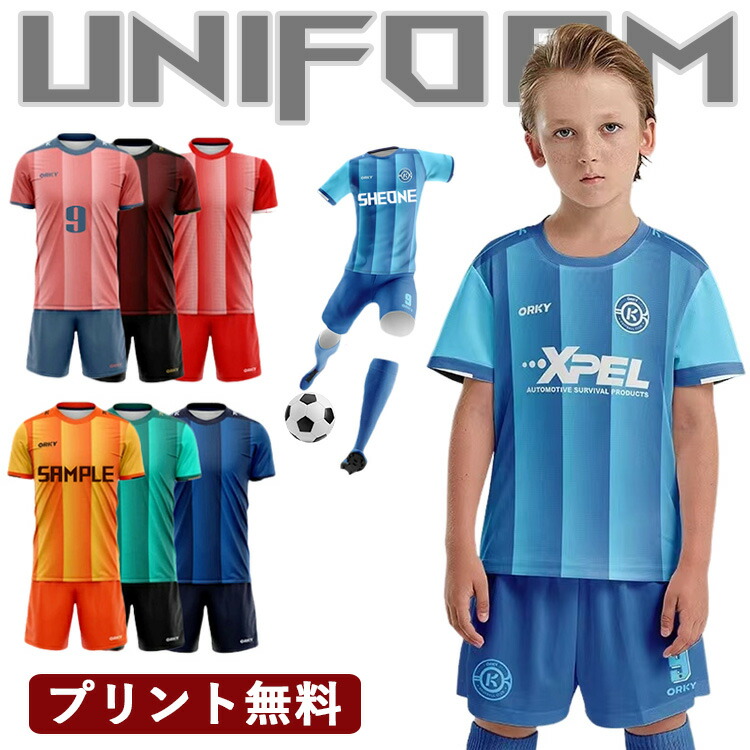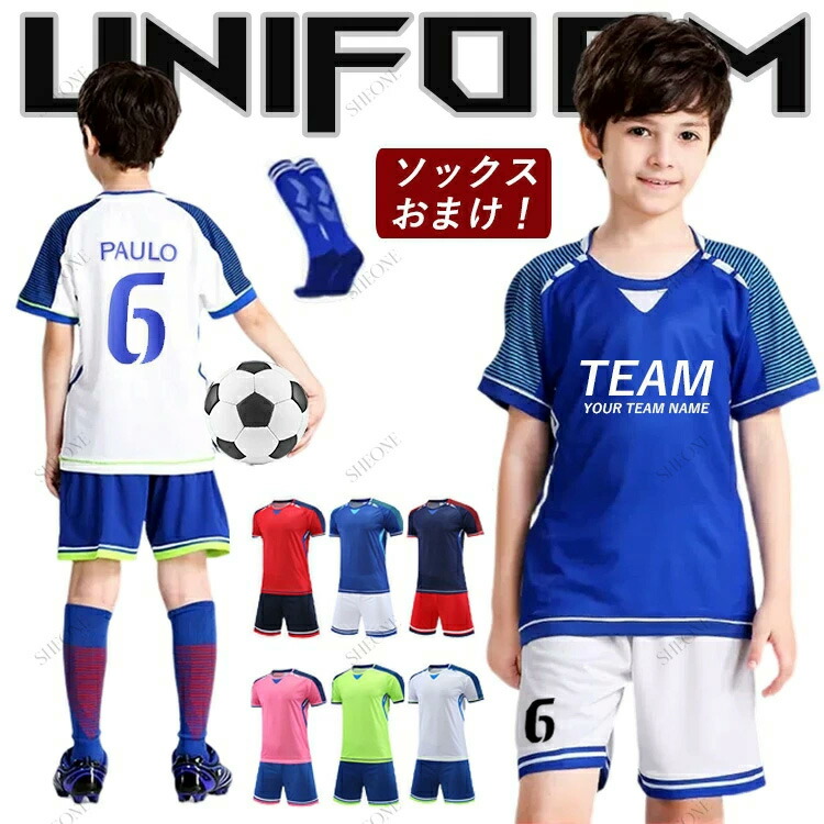 サッカー ユニフォーム キッズ セット ジュニア 名入れ マーキング 3点セット フットサル ユニホーム チーム 団体 上下セット ソックス 105-170 6カラー 遠征 フットサル マーキング