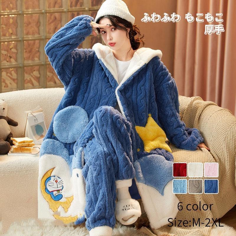 ルームウェア あったか ふわふわのカップル レディース メンズ 秋 冬 コーラル 起毛 カップル 冬 屋外 厚手 フランネル 長袖 ホームウェア メンズスーツ 珊瑚のウール ぬいぐるみ 暖かい 服 セ