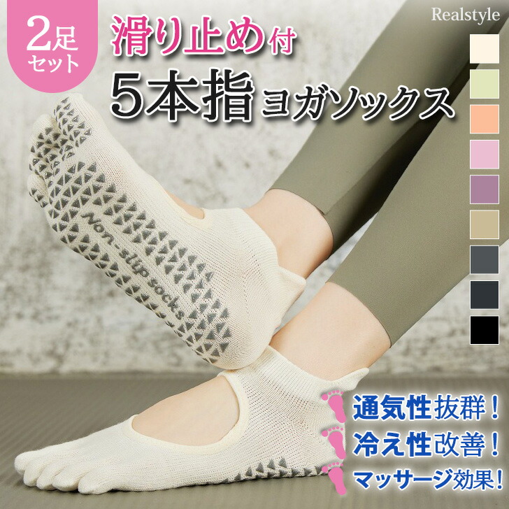 滑り止め付き レディース 5本指 ヨガソックス 2足セット ソックインナー 下着 ナイトウェア レディース 靴下 レッグウェア 靴下