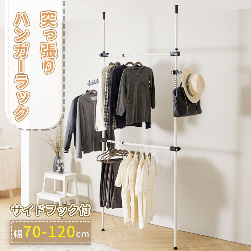 突っ張り ハンガーラック 洋服ラック 2段 幅80-110cm 高さ日用品雑貨 文房具 手芸 洗濯用品 ランドリーラック