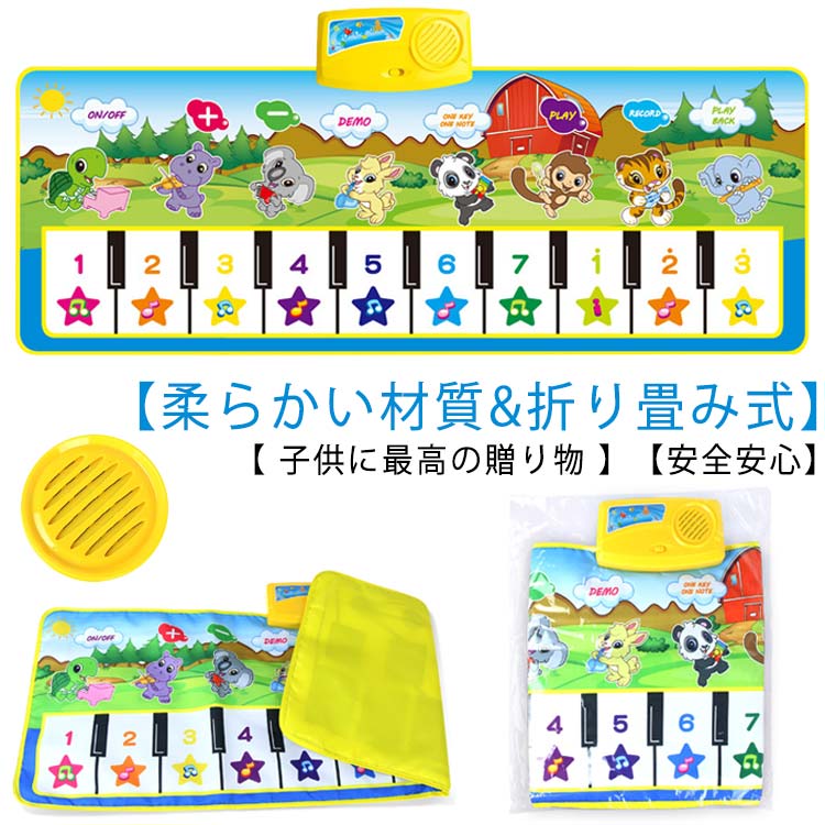 ピアノおもちゃ 音楽マット ピアノマット 知育玩具 スピーカー搭載 楽器効果音 録音再生機能 折り畳み おもちゃ 鍵盤マット ミュージックマット 触感ゲーム