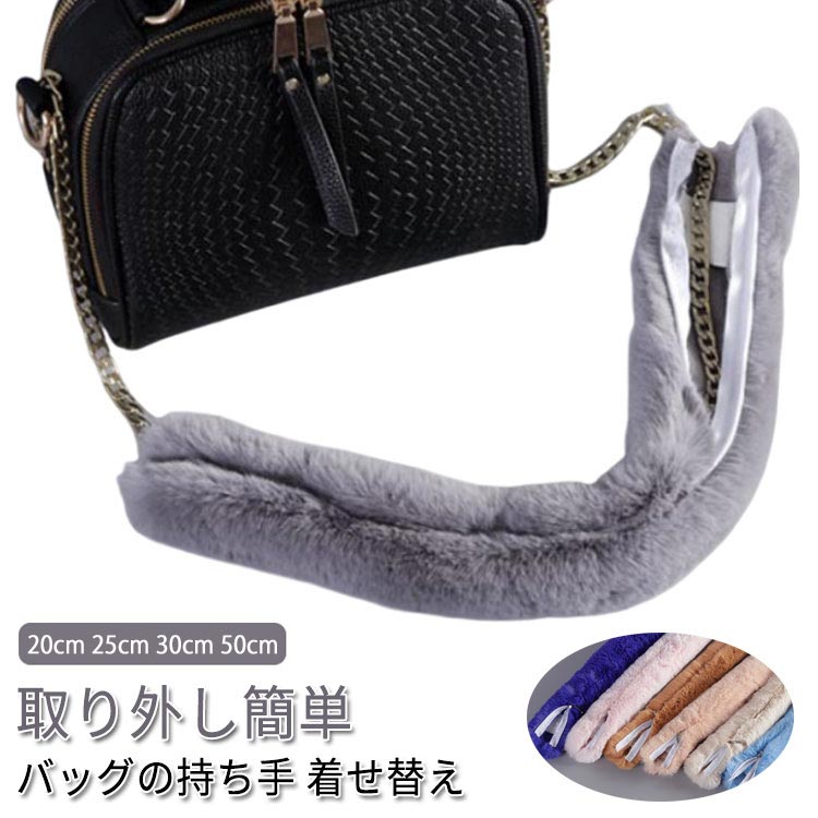 選べる12色×4サイズ ファーハンドル カバー バッグ ハンドル 秋冬 ファスナー式 フェイクファー 取り外し簡単 バッグの持ち手 ふわふわ もこもこ 柔らか 暖かい 20cm 25cm 30cm 5