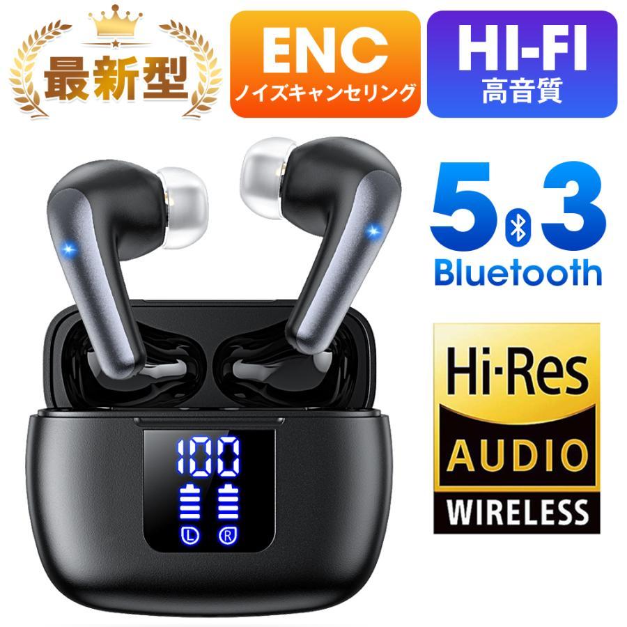 ワイヤレスイヤホン高音質 両耳 片耳 軽量 残量表示 自動ペアリング IPX6防水 iPhone Android対応 Bluetooth5.3 ワイヤレス イヤホン ノイズキャンセリング
