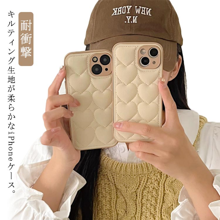 iPhone16 ケース iPhone16Pro ケース 可愛い 韓国 iPhoneケース かわいい ハート キルティング レンズ保護 耐衝撃 キルティングケース おしゃれ アイフォン16 ケース 耐