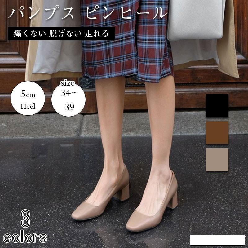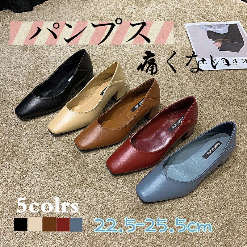 痛くない 美脚パンプス 柔らかい 歩きやすい 5センチヒール チャンキーヒール コンフォートパンプス スクエアトゥ レディース 仕事 ィス 通勤 ハイヒール