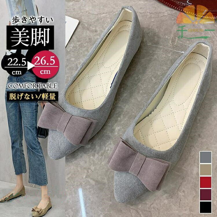 走れるパンプス パンプス 黒 リボン フラットシューズ ポインテッドトゥ レディース 低反発 痛くない 軽量 美脚 歩きやすい 靴 おしゃれ 夏