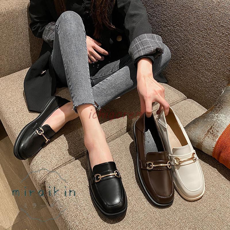ローファー レディース カジュアルシューズ フラットシューズ 歩きやすい 学生 スクエアトゥ 靴下 スリッポン きれいめ 春 夏 秋 冬 裏起毛 白 黒 ホワイト ブラック 21.5cm-26.5cm