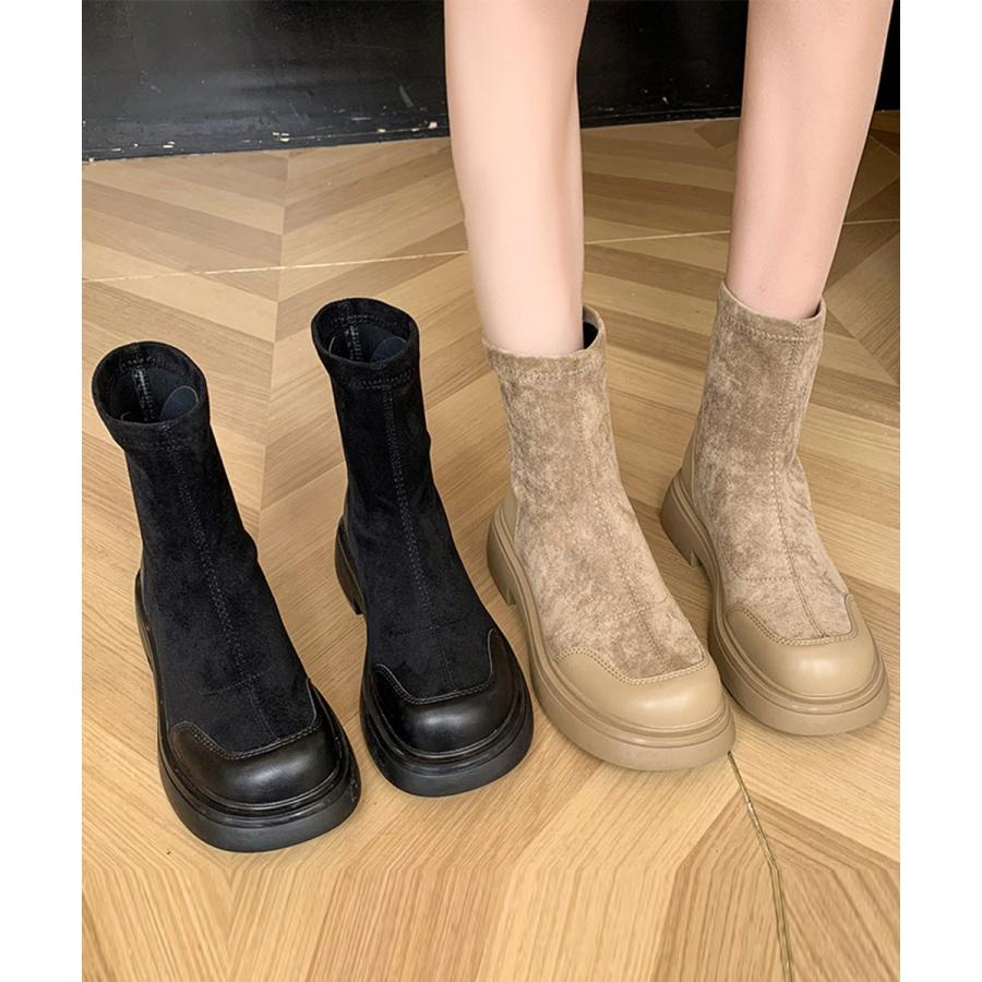 ショートブーツ ソックス風 裏起毛靴 レディース靴 ブーツ ウエスタン