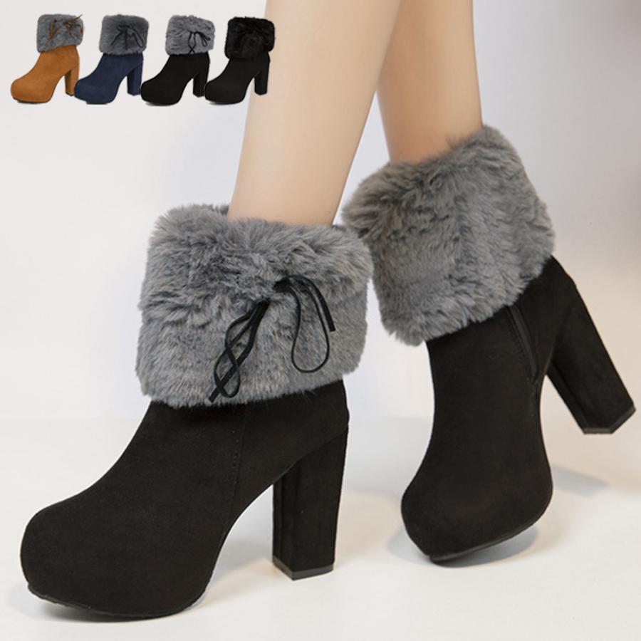 ファーブーツ ブーティー 太ヒール 韓国靴 レディース靴 ブーツ ウエスタン