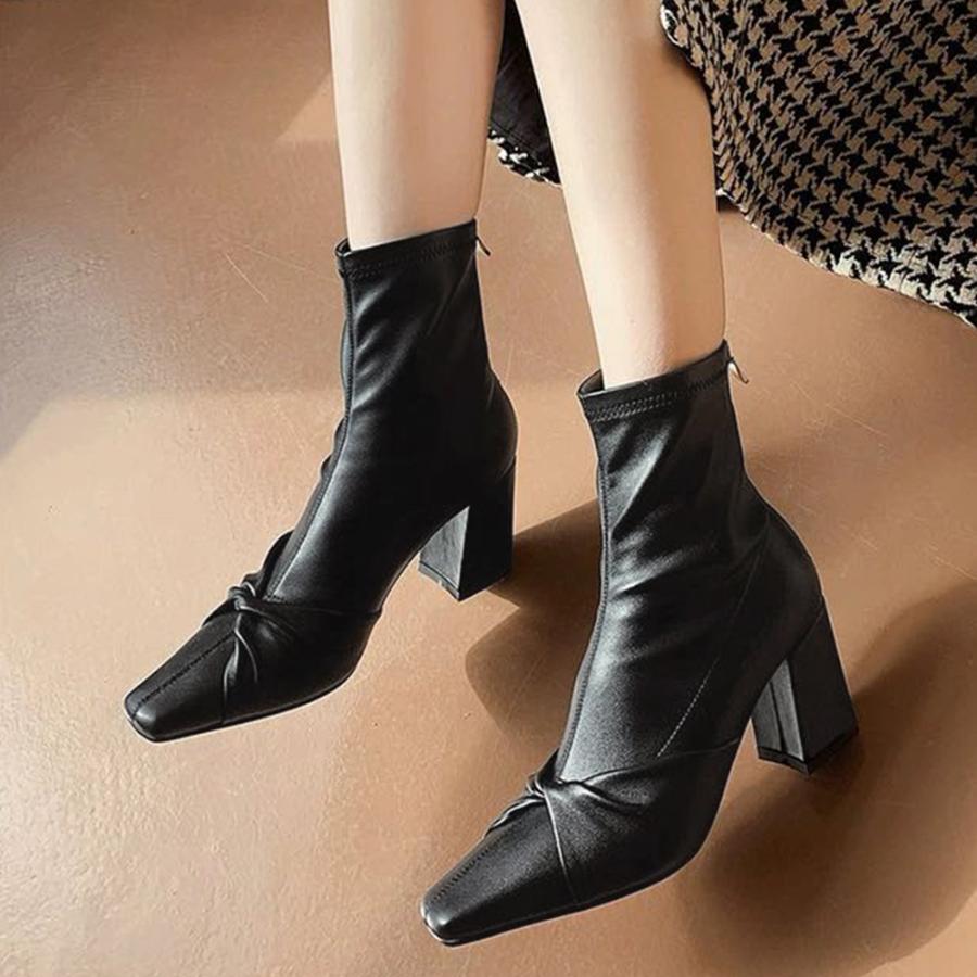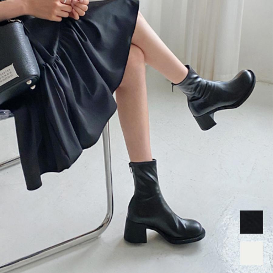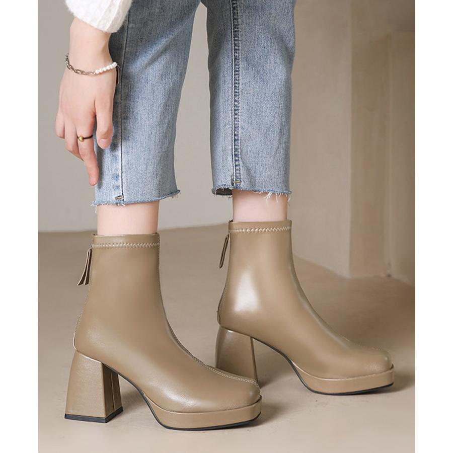 ショートブーツ レディース太ヒールブーツ ショートブーツレディース 厚底ブーツ スリム 合皮ブーツ 韓国 バックファスナー 秋冬美脚シューズきれいめ