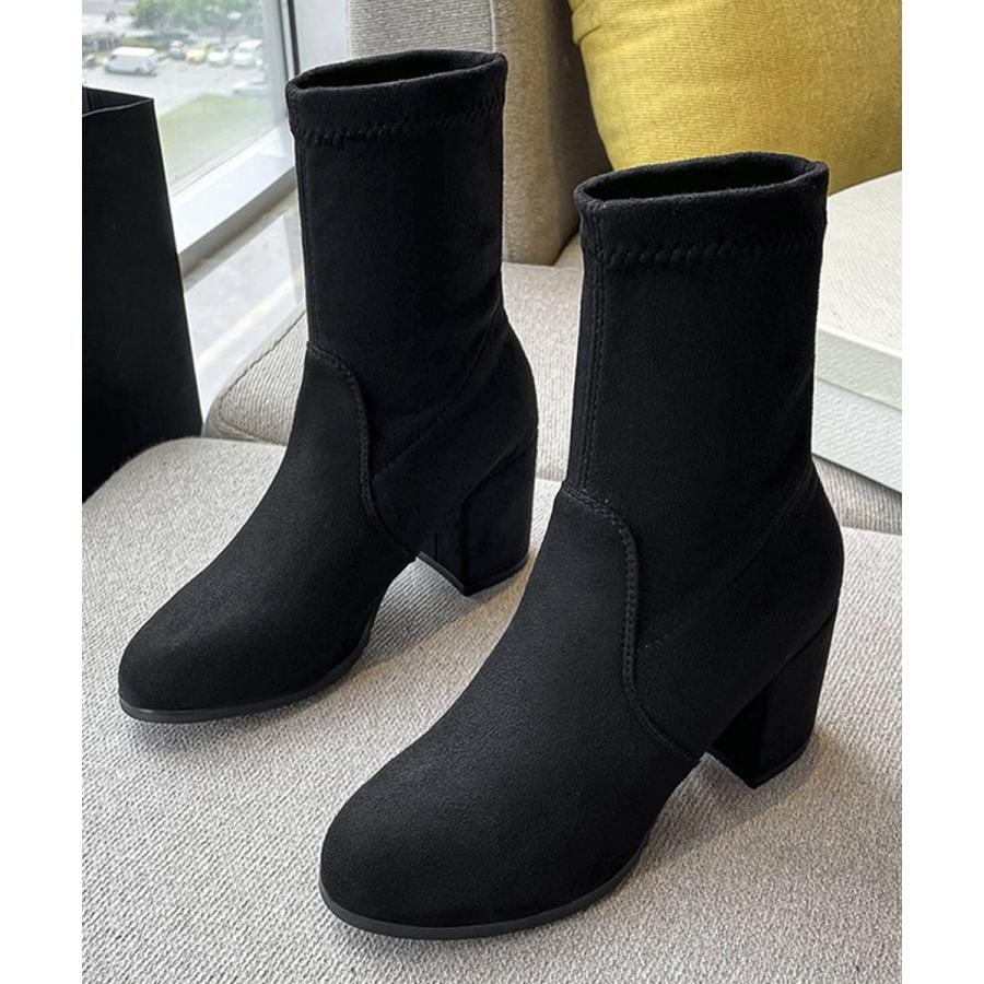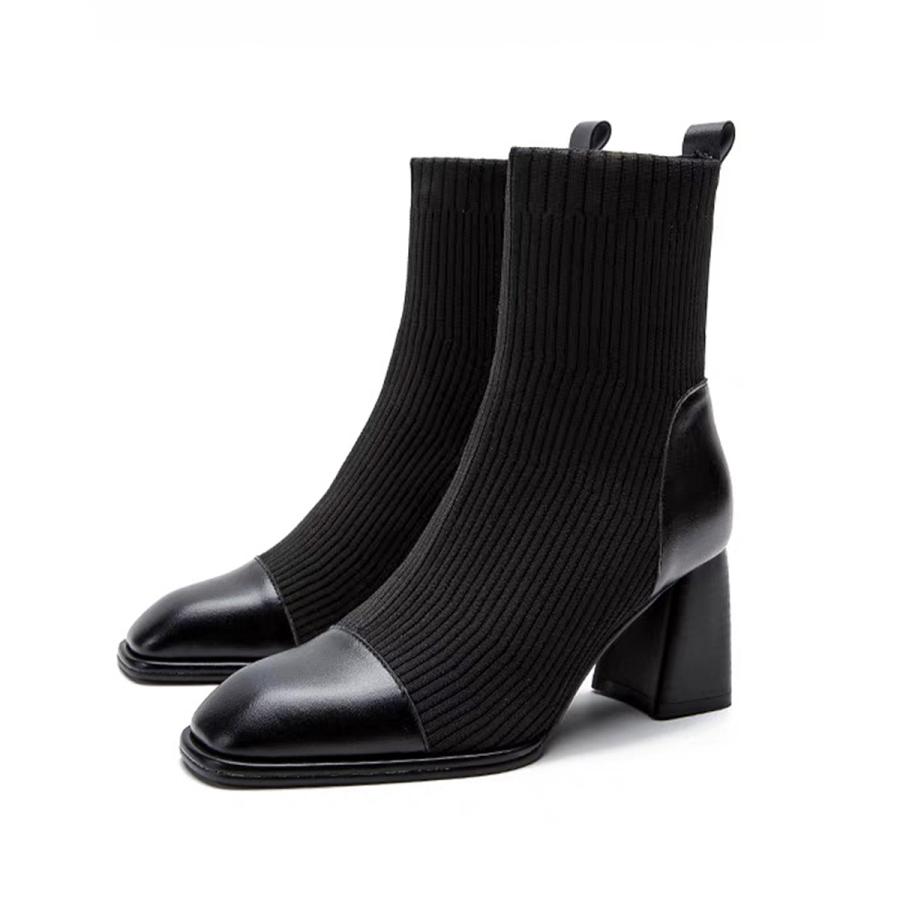 ソックス風ブーツ レディース 太ヒール靴 レディース靴 ブーツ ウエスタン