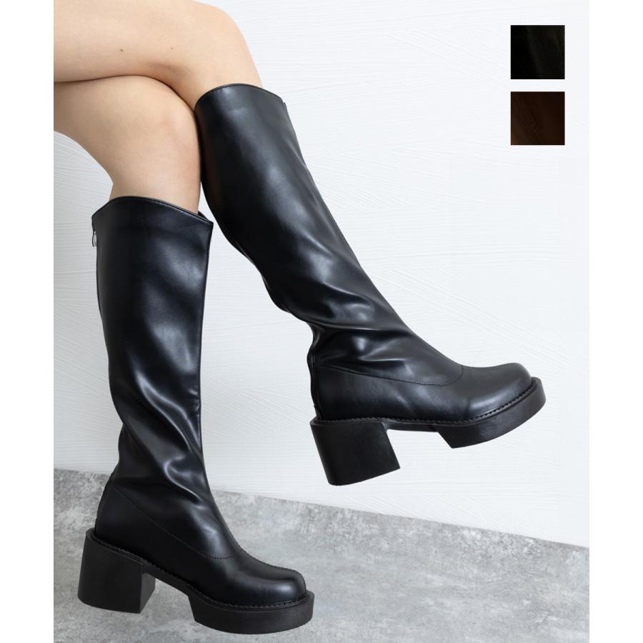 ストレッチブーツ チャンキーヒール 美脚靴 レディース靴 ブーツ ウエスタン
