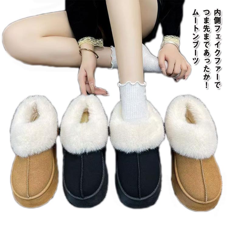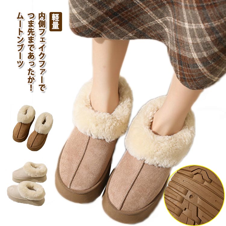 ムートン調のファーがつま先まで暖かい あったかブーツ 内ボア ムートン スリッポン スエード調 普通履き 外履き ウィンターブーツ ムートンブーツ ショート 秋 冬 雪 靴