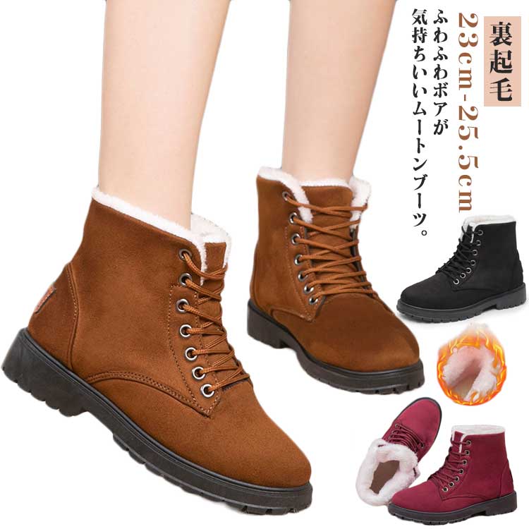 暖かいモコモコ 雪道でも安心の滑りにくいスノーブーツ コーデにも最適の人気のムートンブーツです♪ 女性 大人 走れる シューズ ブーツ 編み上げ 裏起毛 秋 冬 冬靴 暖かい アウトドア