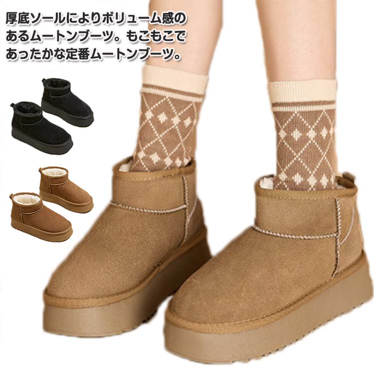 ムートンブーツ スノーシューズ ブーツ スエード調 防寒 暖かい 裏ボア 裏起毛 ウインターブーツ レディース 厚底ブーツ ショートブーツ