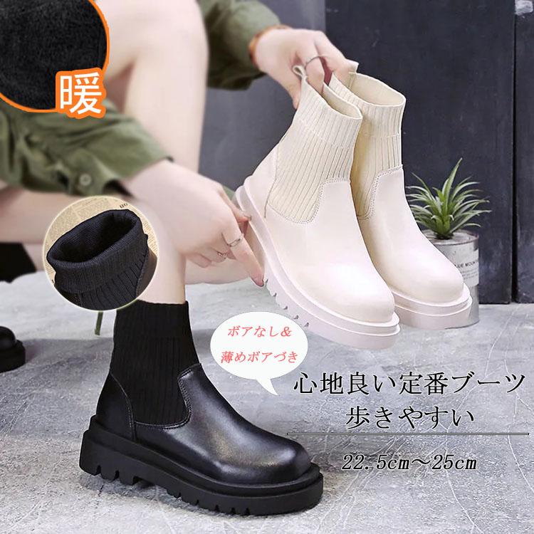 ソックスブーツ レディース サイドゴア ショートブーツ ミドル丈 レインブーツ 厚底 ストレッチ ミドルブーツ ハーフ丈 トラックソール 5ヒール ボア