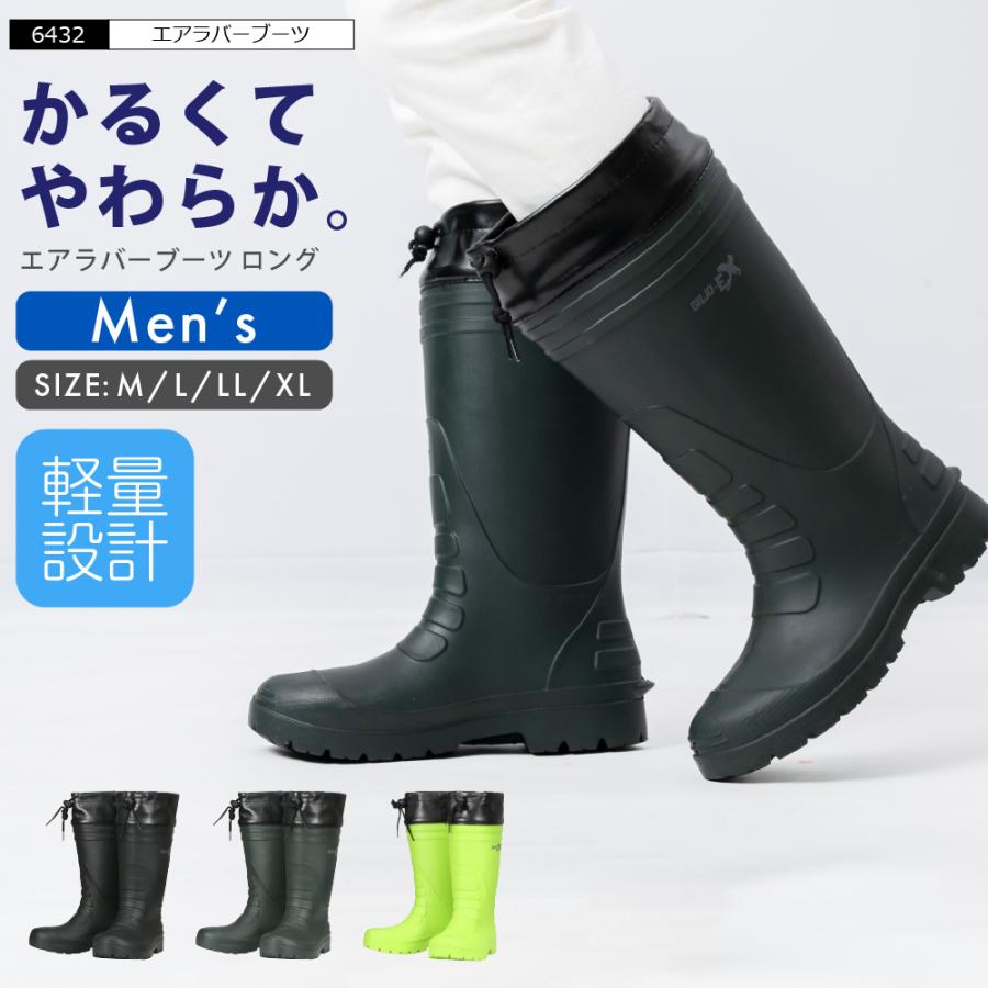 レインブーツ メンズ ロング 長靴 軽量 超軽量 疲れにくい 雨靴 アウトドア スノーブーツ 雪 農作業 仕事 作業 エアラバーブーツメンズ 長靴 6433