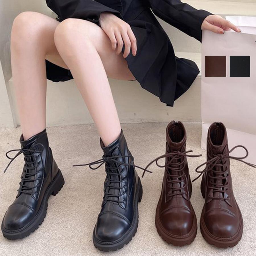 ショートブーツ レディース 厚底 ローヒール きれいめ 靴 黒 編み上げブーツ ミドル 白 痛くない レースアップシューズ 厚底ショートブーツ アンクルブーツ トラックソールブーツ 韓国