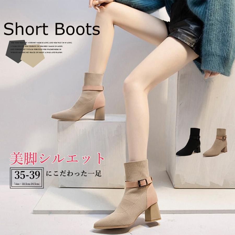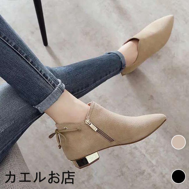 ブーティー レディース アンクルブーツ 太ヒール ショートブーツ ポインテッドトゥ ブーツ ローヒールシューズ 安定感 美脚 通勤 シューズ 婦人靴