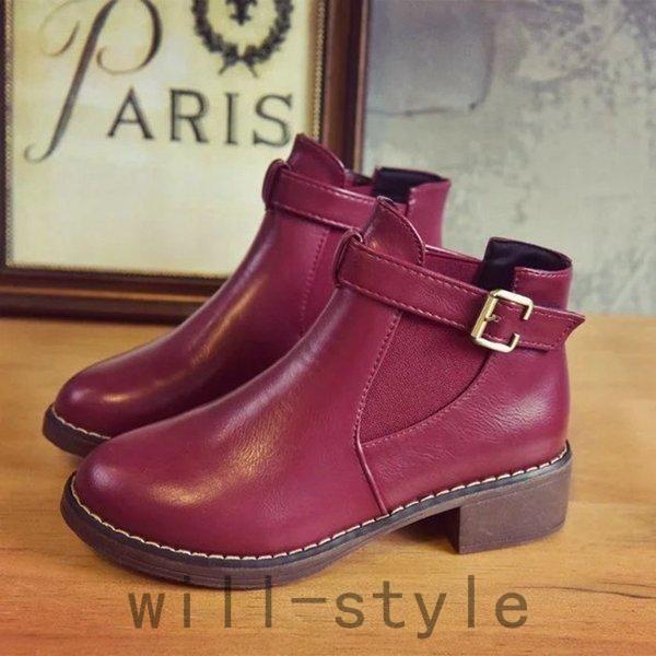 ショートブーツ レディース ローヒール 厚底シューズ 靴無地 カジュアルシューズ 美脚 歩きやすい 2024年秋冬新作