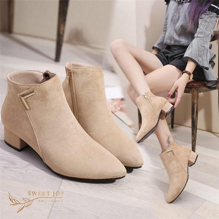 ブーティー ブーツ ショートブーツ レディース レディースブーツ ヒール 靴 レディースシューズ 太めヒール 美脚 歩きやすい 疲れない スエード 履きやすい