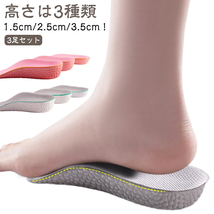 衝撃吸収、通気性抜群 自然に身長UPで美脚効果 普段履いているシューズに入れるだけだから簡単 足にかかる圧力を分散して足の負担を軽減♪