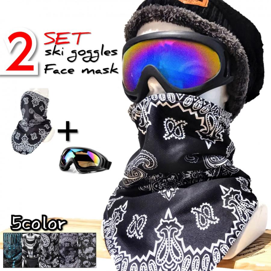 スキー スノーボード ゴーグル レディース メンズ キッズ スノボ フェイスマスク 防寒 ネックウォーマー スポーツ バイク 2点セット