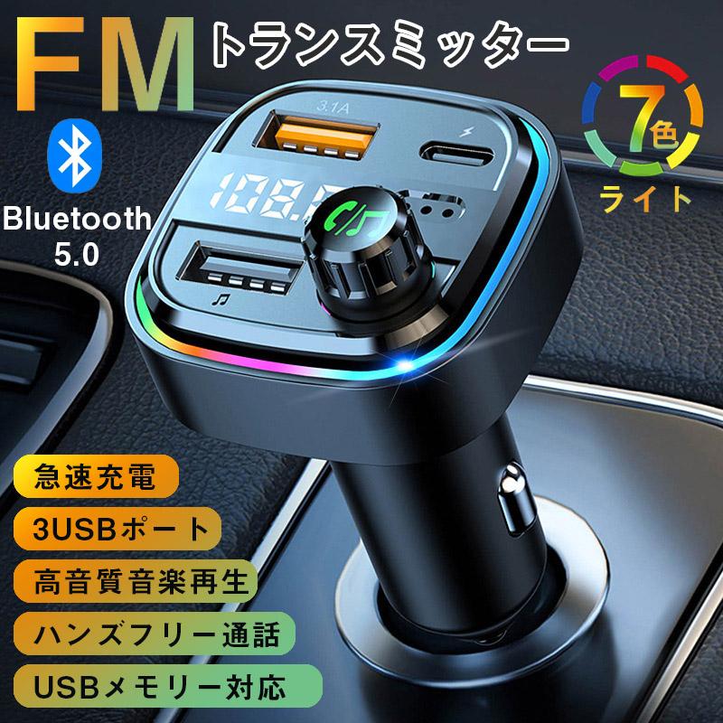 FMトランスミッター Bluetooth 車 シガーソケット iPhone アンドロイド 3ポート 急速充電 LEDライト記憶 ハンズフリー通話 usbメモリー 音楽自動再生