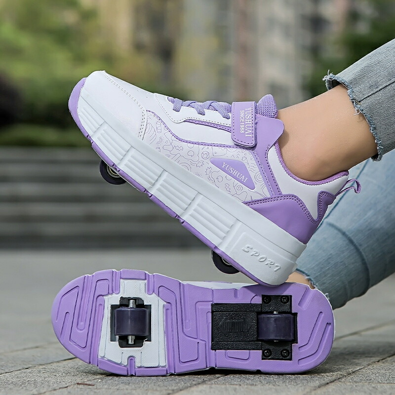 ローラーシューズ 前輪取外し可能後輪ワンボタン収納式 スポーツシューズ 両輪 2輪式 子供用運動靴 ギフト 収納式インラインスケート 大人
