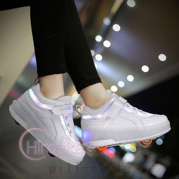 ローラーシューズ しまえる 子供 19cm 大人 大人用 ローラースケート シューズ 靴 子供 光る靴 スニーカー キッズ 子ども 女の子 男の子 2輪 led ローラーシューズ子供用 かかとボタン