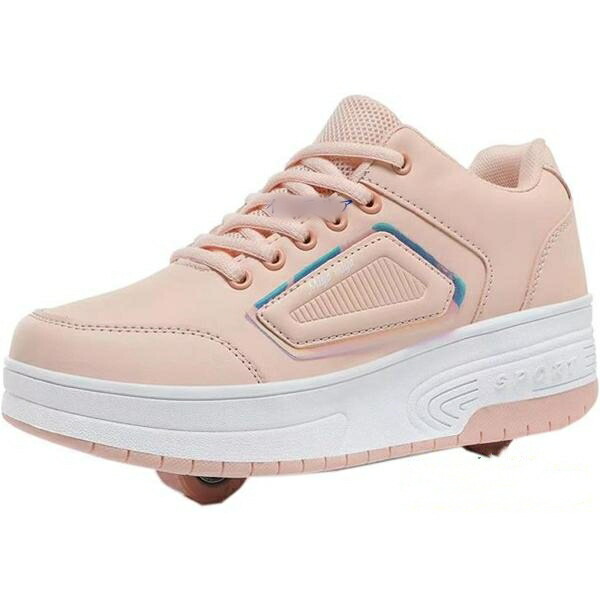 ローラーシューズ ローラースケート 靴紐フリ 通気 メッシュ ピンク キッズ 大人 子供 メンズ レディース 靴 女の子 男の子 スニーカー ローラースニーカー