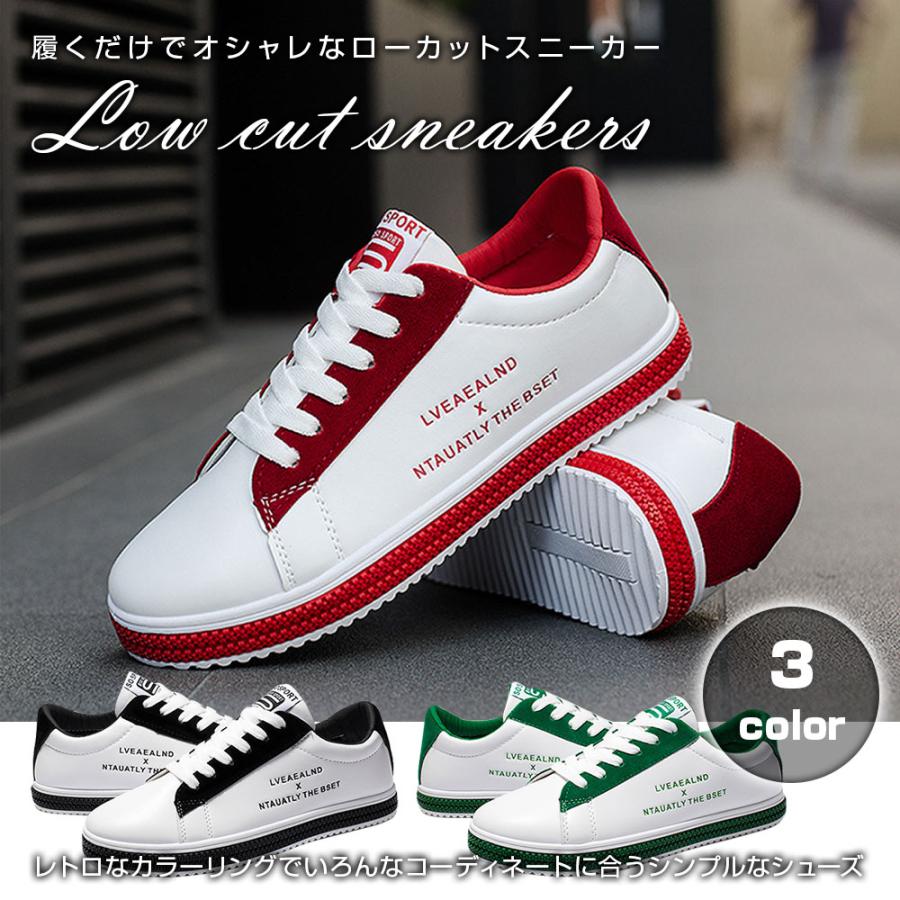 ファッション スニーカー メンズ 白 靴 ウォーキング カジュアル ローカット 黒 赤 緑 おしゃれ 通勤 通学 シンプル 安い オールシーズン