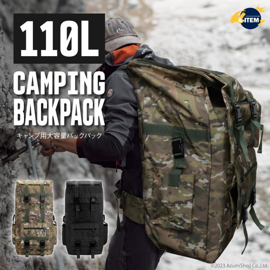 キャンプ用大容量バックパック 110 迷彩 黒 大容量 リュック キャンプ 旅行 登山 ハイキング 釣り アウトドア