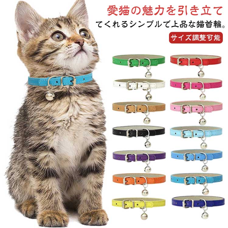 PUレザー 猫 首輪 鈴付き おしゃれ 小型犬 猫用 猫の首輪 8サイズ サイズ調整可能 合成皮革 ギフト