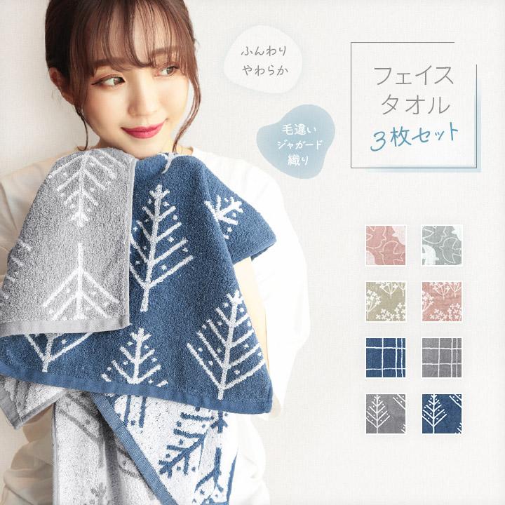 フェイスタオル 3枚セット ふんわりタオル 34×84cm 毛違いジャガードタオル まとめ買い 339匁 厚め