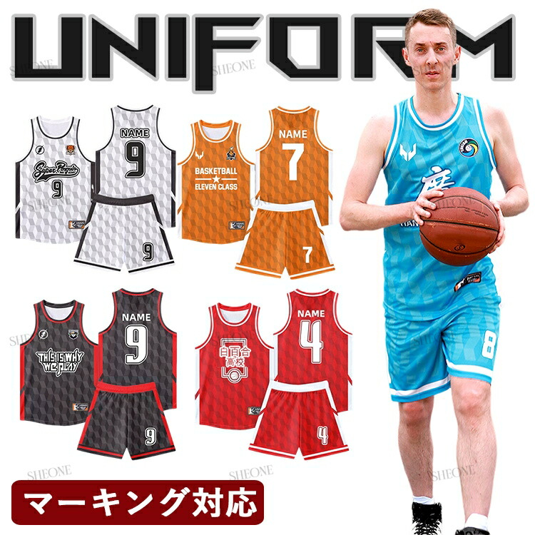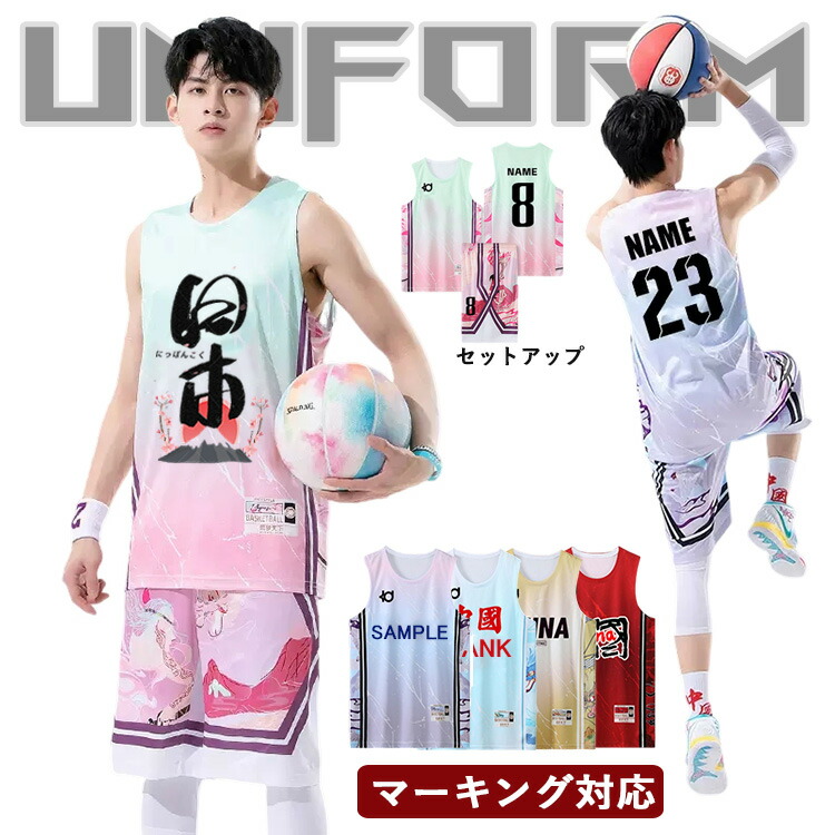 名入れ無料 バスケ ユニフォーム バスケット セットアップ ユニホーム 背番号 アイロン バスケットボール シャツ 昇華 プリント チーム 団体 150-225 社会人バスケ オリジナル 上下セ