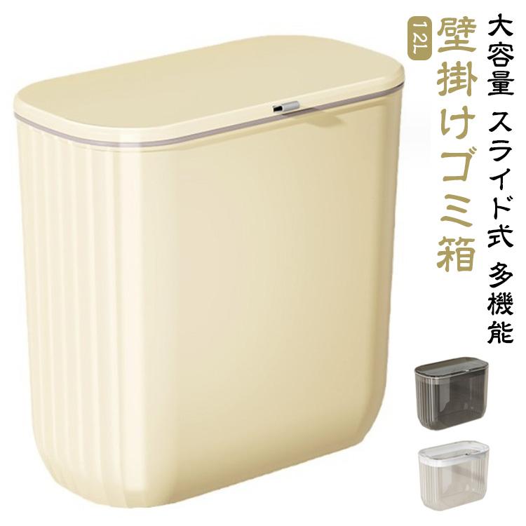 ふた付き 12L キッチン スリム ゴミ箱 スライド式 生ゴミ 壁かけインテリア 寝具 収納 ゴミ箱