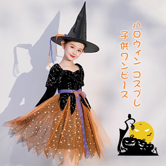 コスプレ 女の子 衣装 魔女 子供 コスプレ 仮装 キッズ スカート コスチューム 子供 洋服 かわいい 可愛い ワンピース 姫系 カラフルドレス 変装 魔法使い キッズ