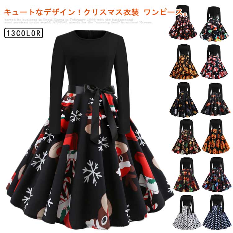 ワンピース かわいいな大人用クリスマスコスチューム ワンピースサンタ サンタ トナカイ クリスマス 衣装 イベント パーティー フレア 大きい裾 レトロ