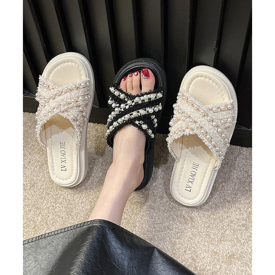 厚底サンダル パール付き クロスサンダル靴 レディース靴 サンダル コンフォートサンダル