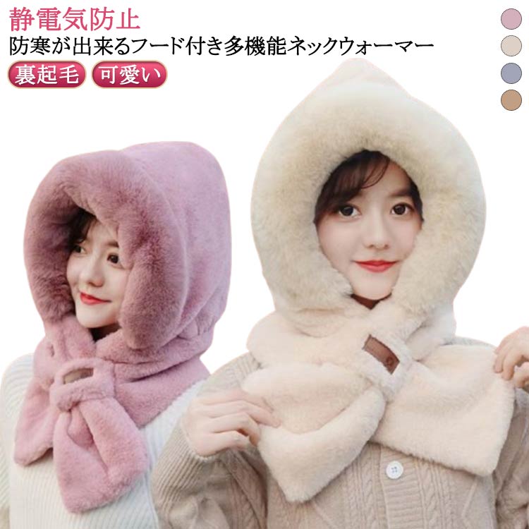帽子+マフラー ふわふわ フリース 暖かい 耳保護 フード付き スカーフ 秋冬 帽子 防寒 保温 柔らかい 優しい肌触り 防風 厚手 軽量 防寒 ネックウォーマー