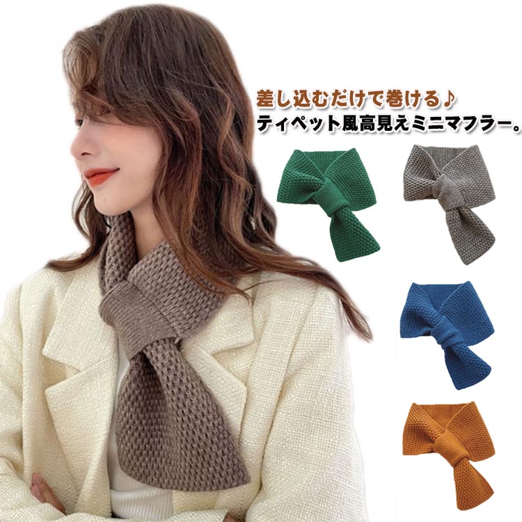 差し込むだけで巻ける リボン型 小顔 ストール 簡単 差し込み 防寒 暖かい あったかい ふわふわ ニットティペット