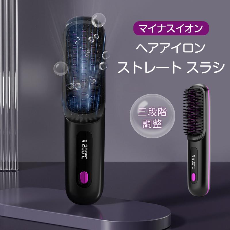 ヘアアイロン ブラシ コードレス ヒートブラシ ストレート カール 男女兼用 マイナスイオン 急速加熱 充電式 温度表示 やけど防止 人気
