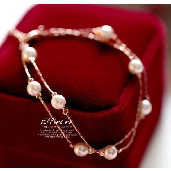 ブレスレット レディース パール 三連 シンプル チェーン 18 ピンクゴールド 個性 女性 パーティー 激安アクセサリー