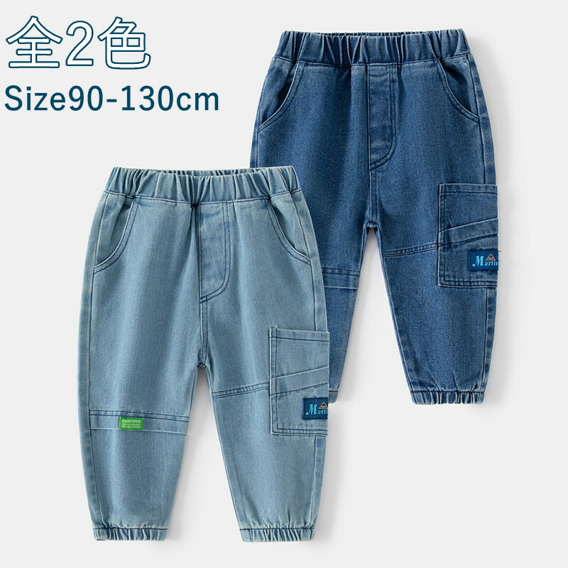キッズパンツ デニム パンツ 春用 夏用 秋用 ソフト 快適 肌触りよい 子ども ロングパンツ ズボン ボトムス 10分丈 ゆったり 無地 ブルー ウェストゴム 通気 シンプル 男児