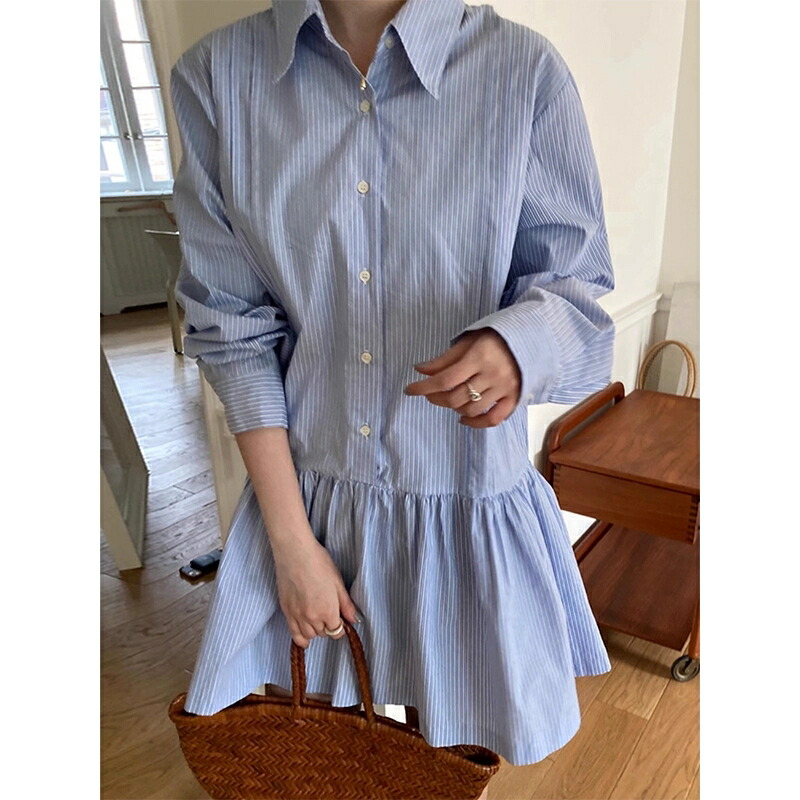 チュニック シャツ マーメイドシルエット シャツワンピース チュニックワンピ ストライプ 無地 夏 秋 春 長袖 大きいサイズ ゆったり ショート丈 ひざ丈 シャツワンピース オシャレ