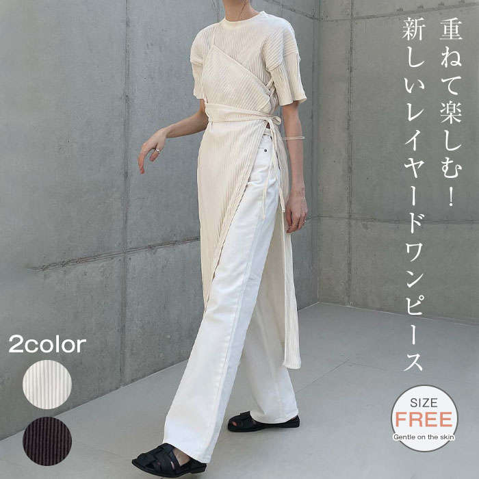 ワンピース レディース 半袖 重ね着 春 秋 ロング丈 ワンピース 切り替え ワンピース レイヤード 重ね着 個性的 デザイン 春 夏 お洒落 きれいめ 着痩せ 大きいサイズ