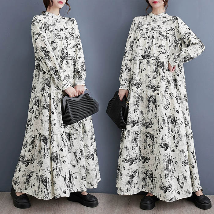 ワンピース 春 夏 秋 レディース 水玉柄 ロングワンピース ドット柄 長袖 ロング丈 大きいサイズ 夏 春物 ワンピース お洒落 きれいめ 体型カバー