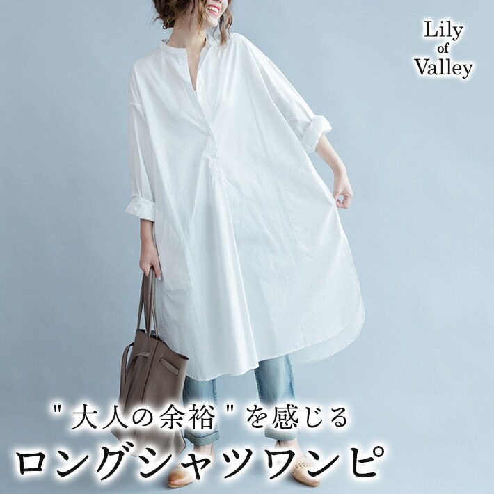 大人の余裕を感じる上品なゆるさの ロングシャツ ワンピース レディース シャツワンピース シャツ ミモレ丈 ゆったり オフィスカジュアル スキッパーネック ロング 大人可愛い